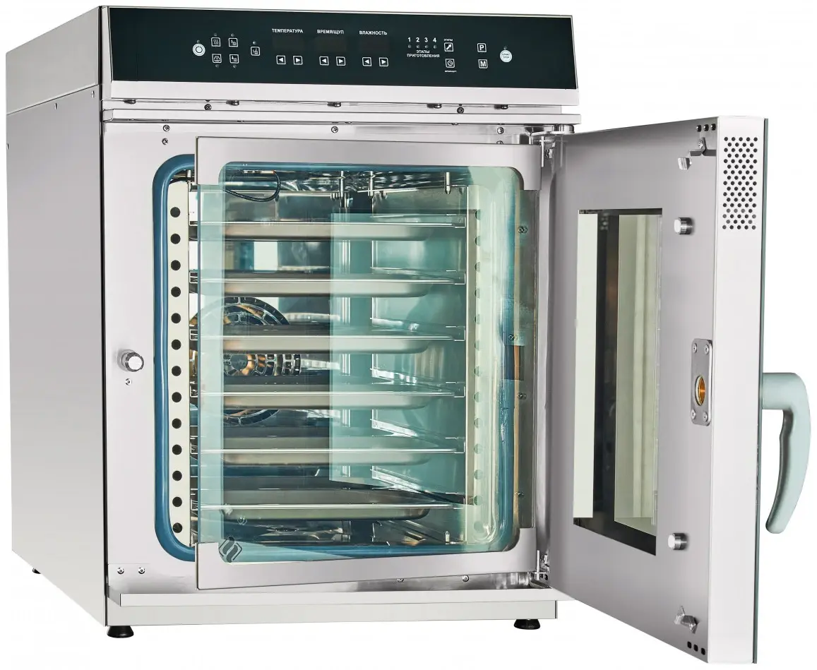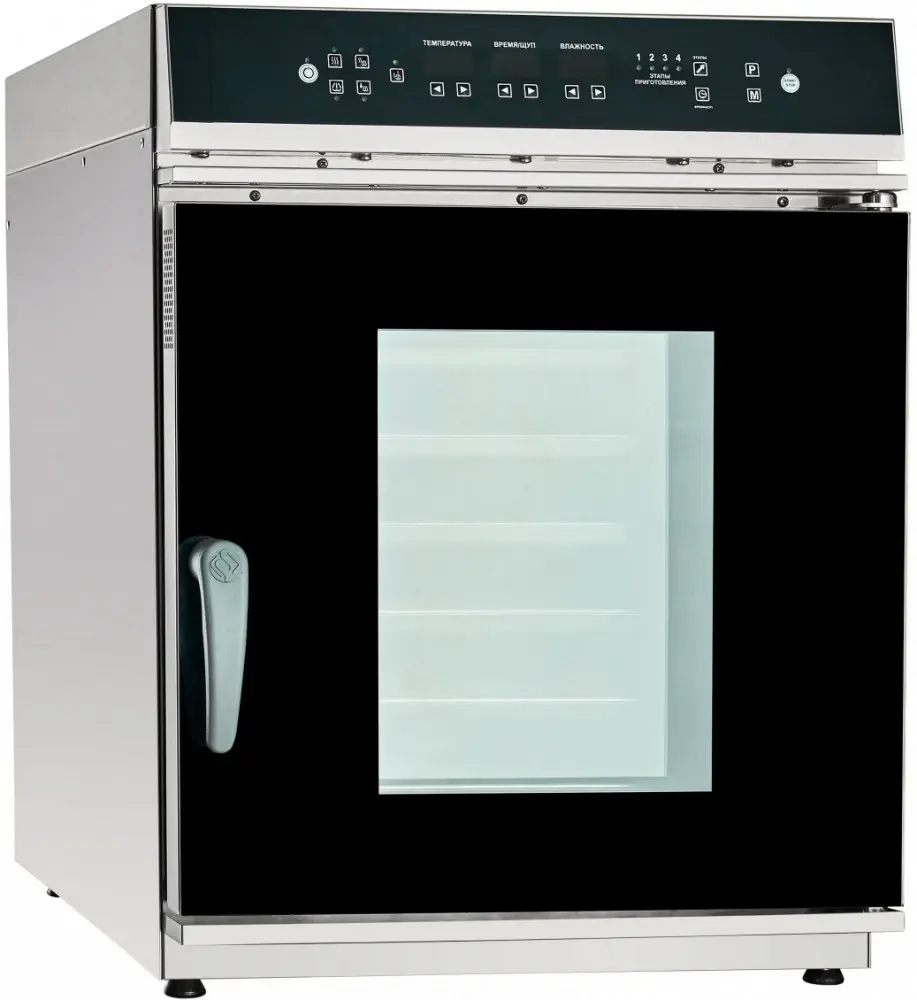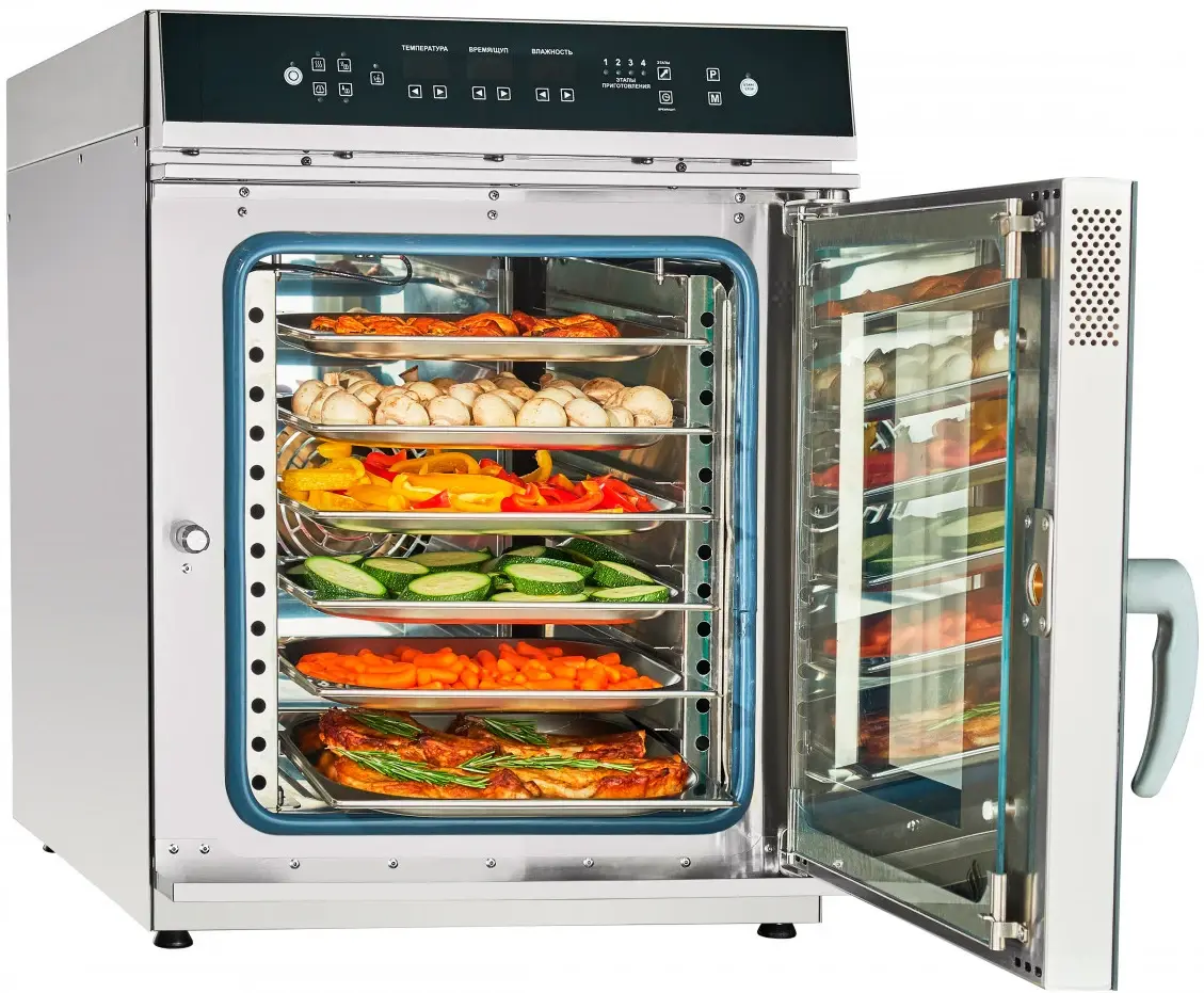 Благодаря своим малым габаритам пароконвектомат занимает минимальную рабочую площадь на кухне, его можно разместить на любом столе или на подставке.