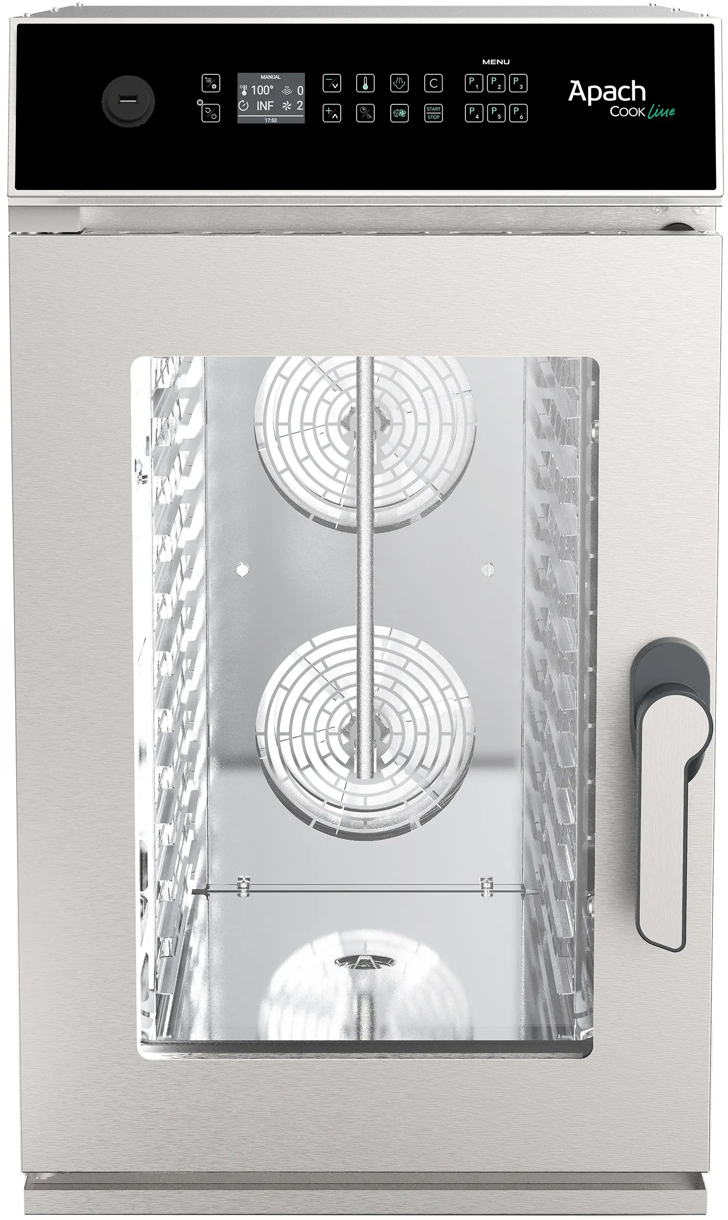 Пароконвектомат Apach AP10NDC Compact предназначен для использования на предприятиях общественного питания для приготовления различных блюд с применением режимов сочетания конвекции и пара. Фактически пароконвектомат может заменить собой несколько типов теплового оборудования, таких как конвекционная печь, жарочный шкаф, плита, сковорода и т.п.