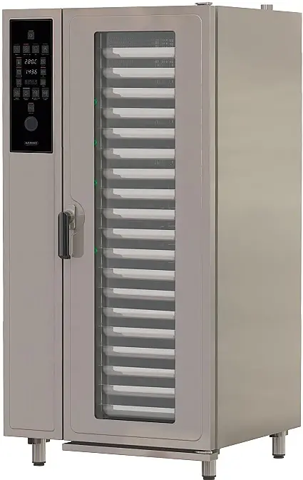 Пароконвектомат Gabino Combi-2011b предназначен для использования на предприятиях общественного питания для выпекания различных кондитерских и хлебобулочных изделий из свежего и замороженного теста с применением режимов сочетания конвекции и пара.