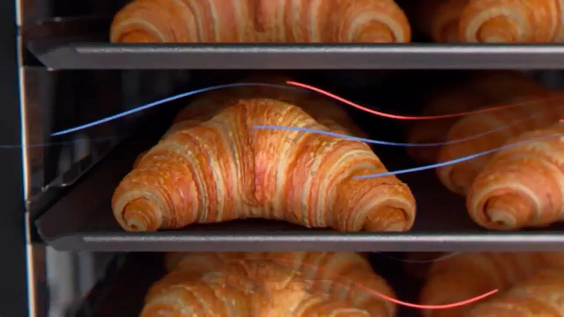 Специальная геометрия рабочей камеры и увеличенное количество вентиляторов обеспечивают оптимальное распределение тепла и, следовательно, мощный подвод энергии к продуктам. Для одинаковых результатов приготовления и высокой производительности.