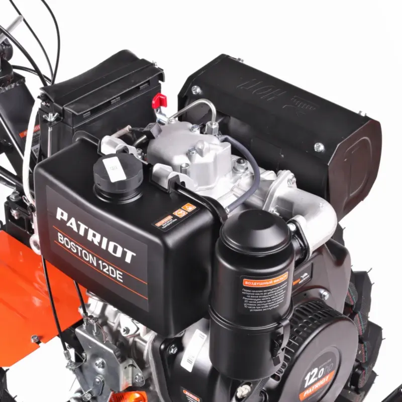 Мощный мотоблок дизельный PATRIOT Boston 12 DE предназначен для обработки больших участков. Совместим с различной навеской благодаря универсальному прицепному узлу и валу отбора мощности (ВОМ), что расширяет функционал.
