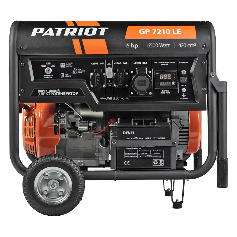 Генератор бензиновый Patriot GP 7210LE применяется в качестве аварийного или автономного источника электроэнергии для питания мощных бытовых электроприборов, электроинструмента, небольших станков, сварочных аппаратов. Оптимальное соотношение мощности двигателя и электрогенератора обеспечивает стабильную работу на номинальной мощности.