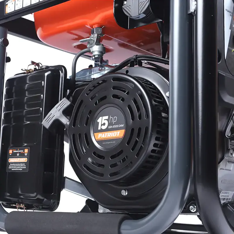 Бензиновый генератор PATRIOT снабжен 4-тактным мотором мощностью 15,1 л.с. со встроенным контроллером управления. Двигатель типа Hemi-Head обеспечивает оптимальное сгорание топлива и более высокую мощность, чем традиционный OHV-двигатель. Электростартер позволяет запустить генератор поворотом ключа в замке зажигания. Для запуска после долгого простоя или при разряженном аккумуляторе пригодится ручной стартер.