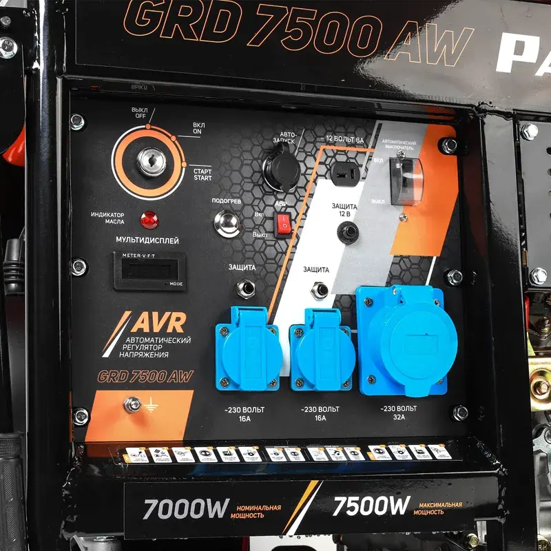 Надежный регулятор напряжения AVR и медная обмотка альтернатора позволяют выдерживать кратковременные 3_х кратные перегрузки для использования с электроинструментом.