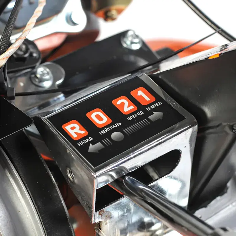 Широкий диапазон передач бензинового мотоблока позволяет выбрать оптимальную скорость движения в зависимости от структуры и влажности почвы. Задний ход облегчает маневрирование и вытаскивание застрявшей в земле машины. Глубина вспашки регулируется установкой высоты сошника. Большие пневматические колеса с глубоким протектором обеспечивают высокую проходимость и хорошее сцепление с грунтом.