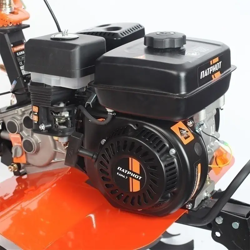 Бензиновый культиватор PATRIOT КАМА 7 используется в садах и на приусадебных участках. Требует минимум технического обслуживания. Оснащен высокопроизводительным двигателем мощностью 7 л.с. Имеет две скорости вперед. Реверс обеспечивает хорошую маневренность. В конструкции предусмотрено переднее колесо для удобства транспортировки агрегата. Возможна установка тележки и другого невесного оборудования.