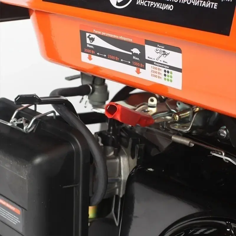 В зависимости от мощности нагрузки с помощью регулятора можно настроить число оборотов двигателя.