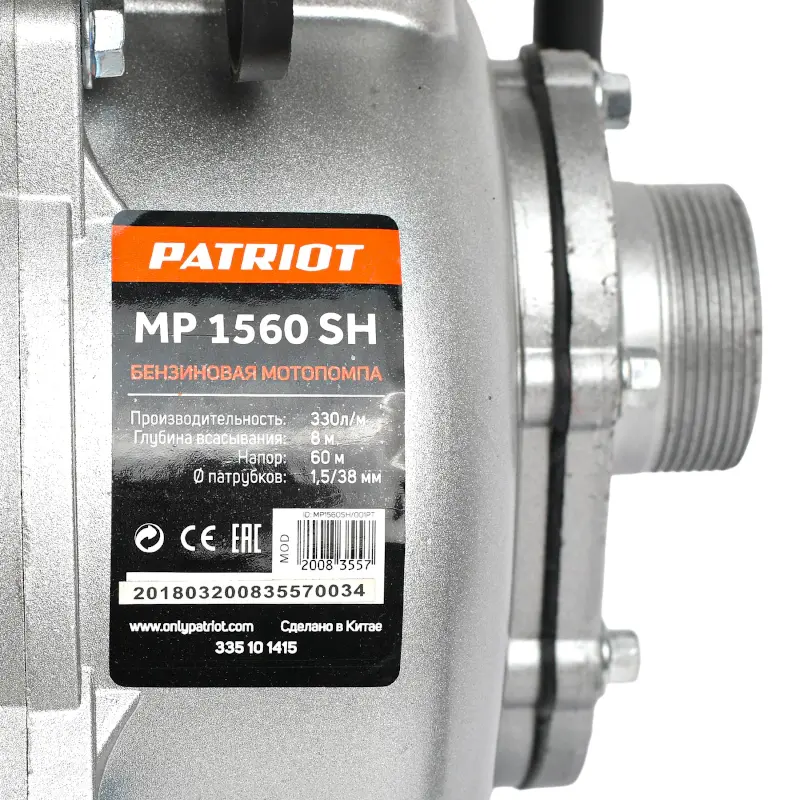 - Все детали бензиновой мотопомпы PATRIOT MP 1560 SH выполнены из высококачественных материалов;