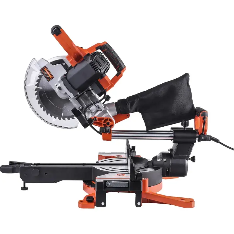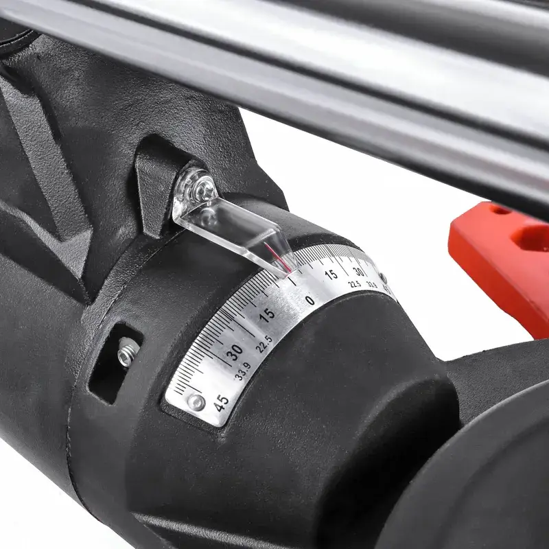 Благодаря функции плавного пуска двигатель постепенно набирает обороты без резких рывков. За счет возможности поворота рабочего стола и наклона пильного диска с помощью сетевой торцовочной пилы можно выполнять резы под углом в двух плоскостях. Шкалы с четкой градуировкой гарантируют высокую точность пропила. Механизм протяжки обеспечивает удобство работы с габаритными деталями. К отводному патрубку на корпусе можно подключить строительный пылесос или пылесборник для удаления пыли и стружек.