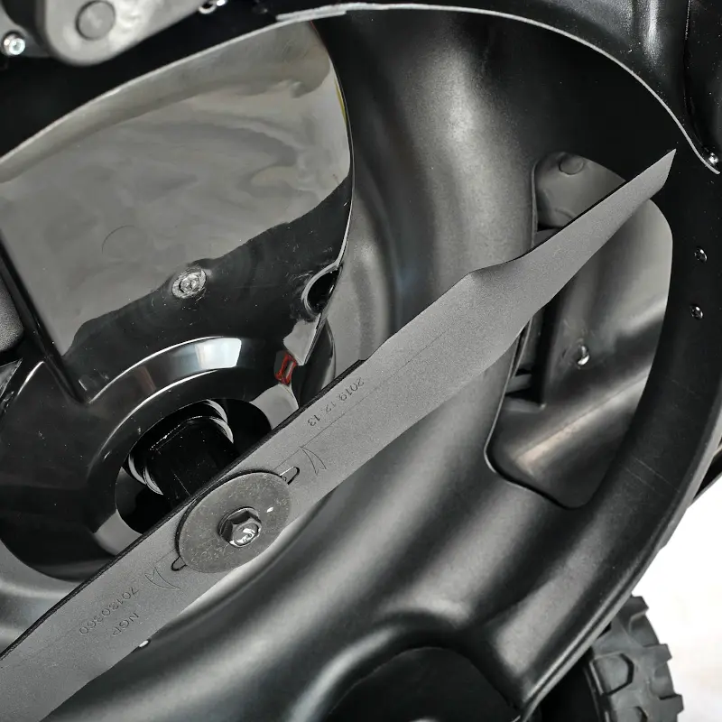 Корпус режущей деки изготовлен из прочной стали. Это способствует большей надежности в отличие от пластиковых моделей.