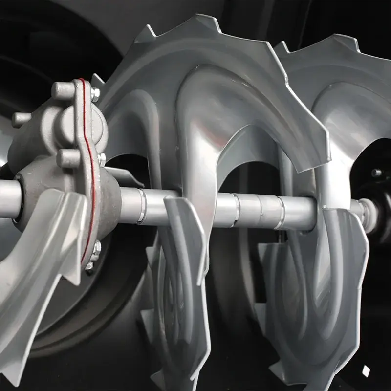 В снегоуборщике установлен прочный металлический шнек с зубцами. Такой механизм быстро перемалывает плотные комки снега, смешанные с грязью, а также обледеневшие сугробы.