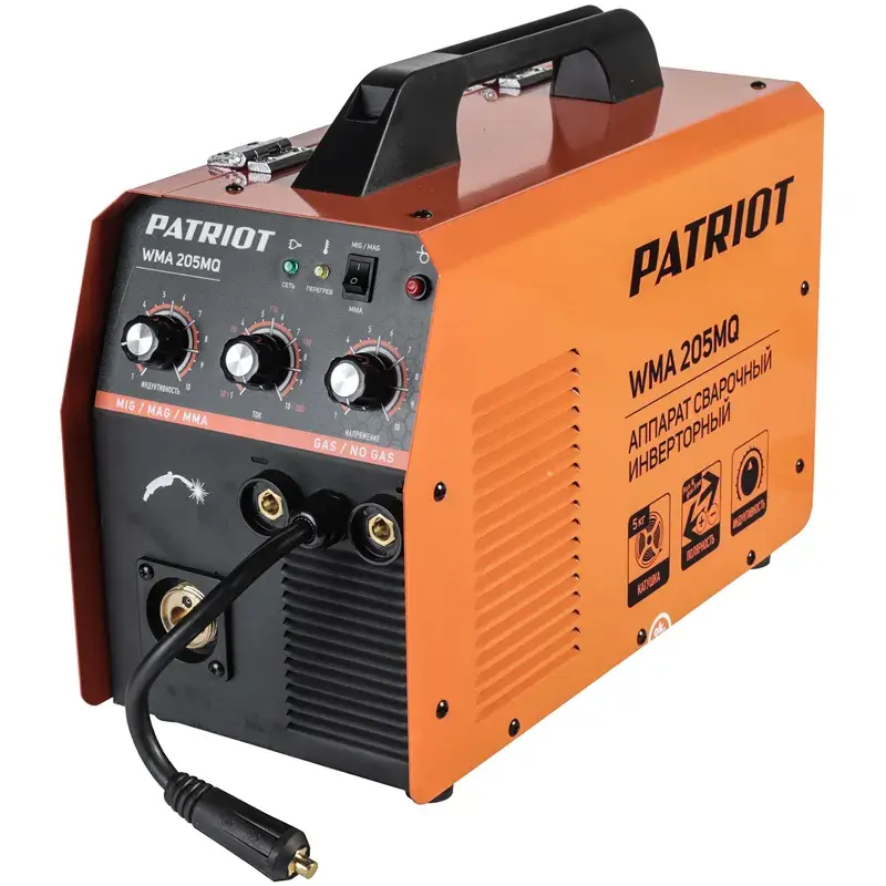 Сварочный полуавтомат PATRIOT WMA 205MQ – универсальная модель, позволяющая соединять металлические заготовки несколькими методами: MIG/MAG в газовой среде, Flux, ММА.