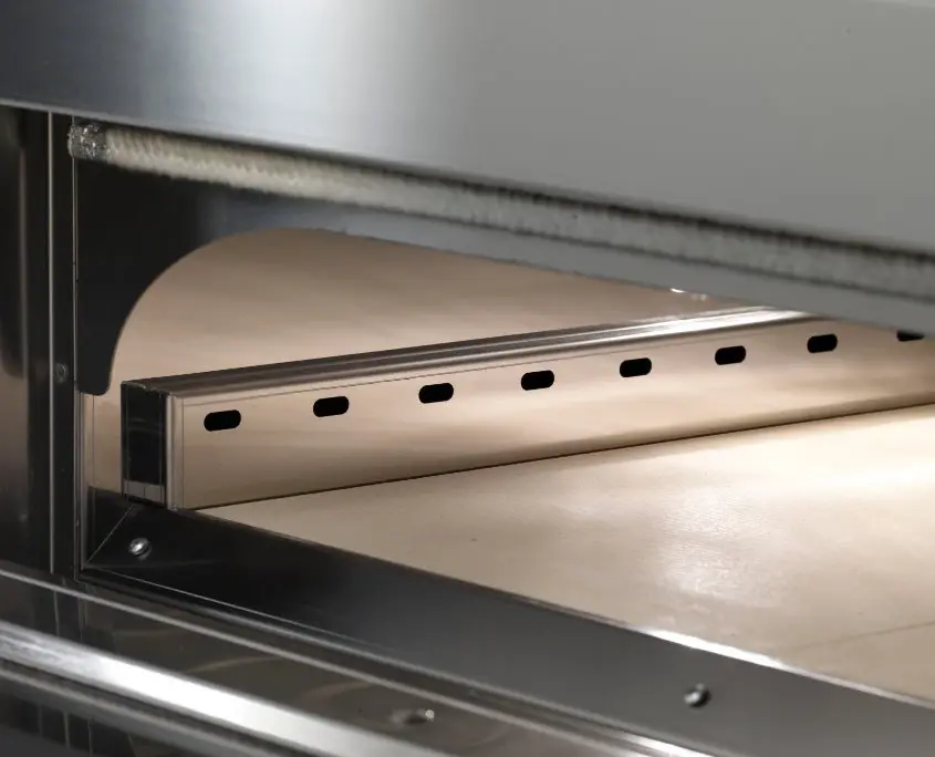 ВЕРСИЯ CD: Система управления с помощью электронной платы; возможность установки температуры в камере и мощности двух блоков нагревательных элементов (верха и пода) по отдельности: OFF – выключено, MIN – 33 % или MAX – 100 %; звуковой сигнал об окончании приготовления; программируемое включение печи с обратным отсчетом до 99 часов.