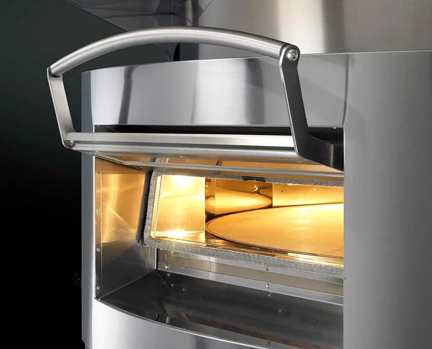 Поверхность для выпечки из кордиеритового кирпича установлена на вращающуюся раму