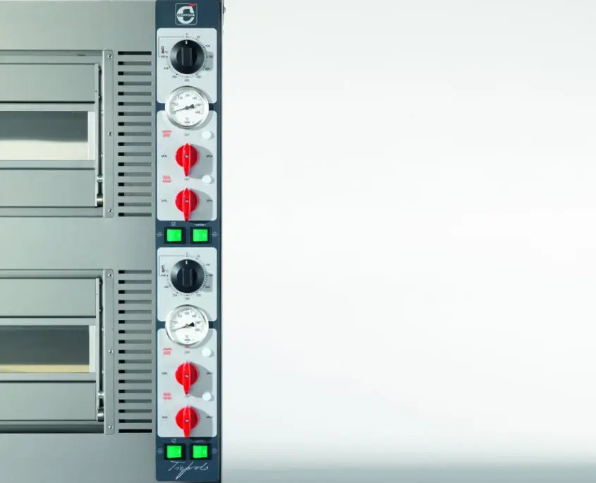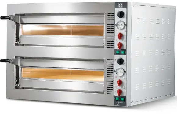 Печь для пиццы Cuppone TP635L/2CM с передней панелью и камерой выпечки из нержавеющей стали предназначена для приготовления пиццы и различных закусок, таких как, сэндвичи, куриные стрипсы и т.д. на предприятиях общественного питания.