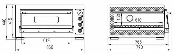 Каменный под и возможность регулировки температуры нижней и верхней поверхностей позволяют максимально равномерно распределить тепло внутри печи и доводить пиццу до полной готовности в течение 3-5 минут.