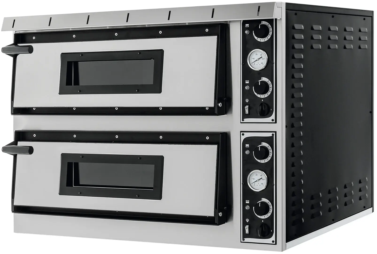 Надежный прибор с аккуратным дизайном, простой в применении и невероятно практичный благодаря съемному стеклу дверцы. Plux XL гарантирует большое качество готовки и чрезвычайную долговечность. Plux XL может быть дополнена подставкой или расстоечной камерой. Печь Plus XL разработана так, чтобы гарантировать великолепную готовку путем раздельной настройки двух разных рабочих температур (455°C) в верхней и нижней части. Plus XL оснащена 6 армированными нагревательными элементами: три в основании, три на своде.