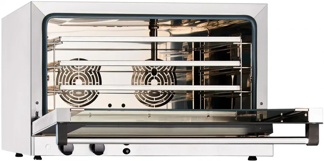Термообработка продуктов осуществляется за счет равномерной циркуляции горячего воздуха внутри рабочей камеры.