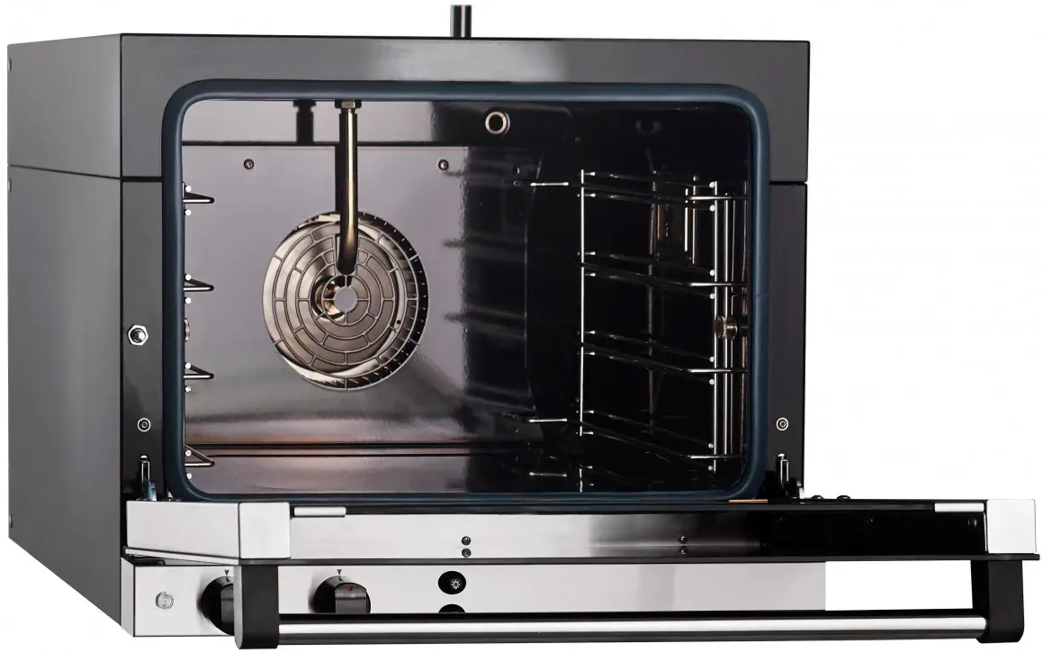 Термообработка продуктов осуществляется за счет равномерной циркуляции горячего воздуха внутри рабочей камеры.