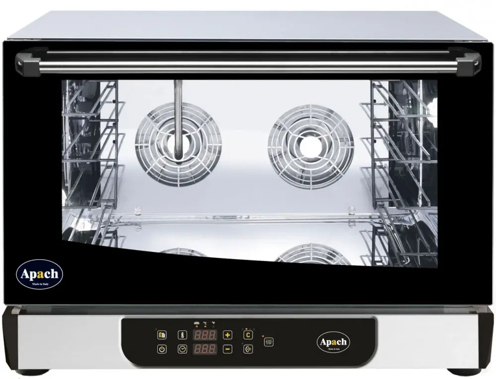 Печь конвекционная электрическая Apach AD46D предназначена для выпекания или разогрева кондитерских и хлебобулочных изделий, готовых блюд, замороженных или предварительно выдержанных в расстоечном шкафу заготовок из теста на предприятиях пищевой промышленности, общественного питания и торговли.