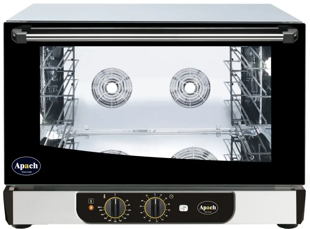 Печь конвекционная электрическая Apach AD46MP Eco предназначена для выпекания или разогрева кондитерских и хлебобулочных изделий, готовых блюд, замороженных или предварительно выдержанных в расстоечном шкафу заготовок из теста на предприятиях пищевой промышленности, общественного питания и торговли.