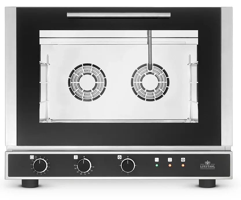 Печь конвекционная электрическая Luxstahl L04EN используется на предприятиях общественного питания и торговли для приготовления мяса и рыбы, для выпечки хлебобулочных и кондитерских изделий.