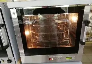 В отличие от обычных духовок и тепловых шкафов в конвекционных печах установлены вентиляторы, которые непрерывно перемещают нагретый воздух по всему рабочему объёму камеры печи. Когда горячий воздух обдувает продукты, а не просто окружает их, продукты готовится быстрее.