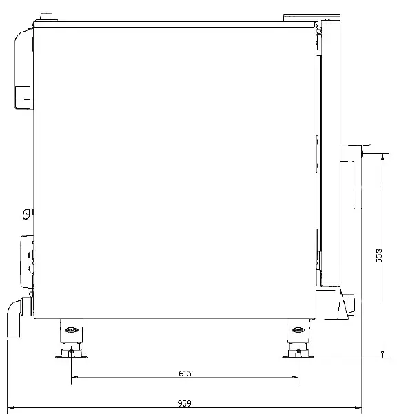 Прозрачная дверца с двойным стеклом выдерживает высокие температуры и фиксируется в нескольких положениях (60°, 120°, 180°) для удобства загрузки.