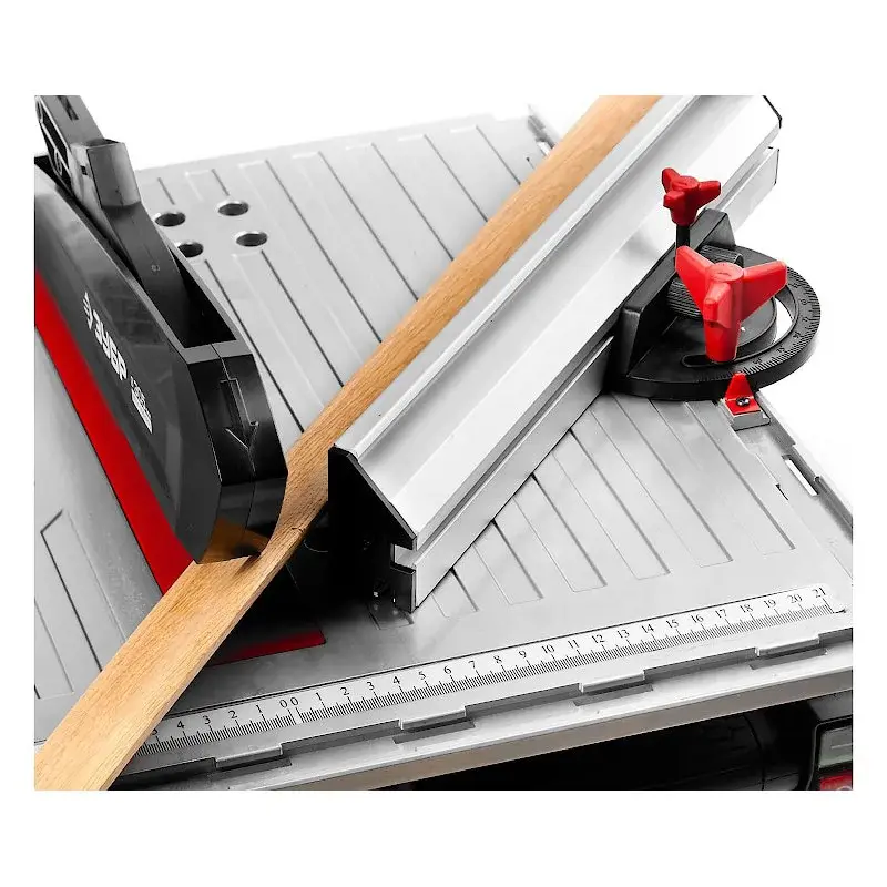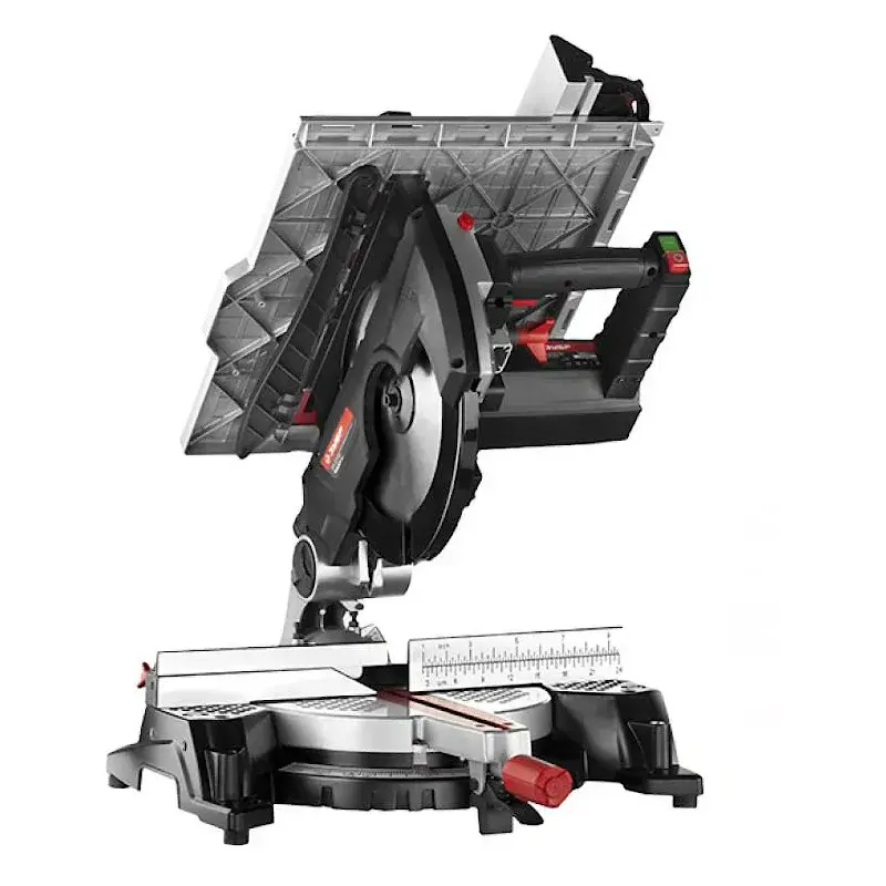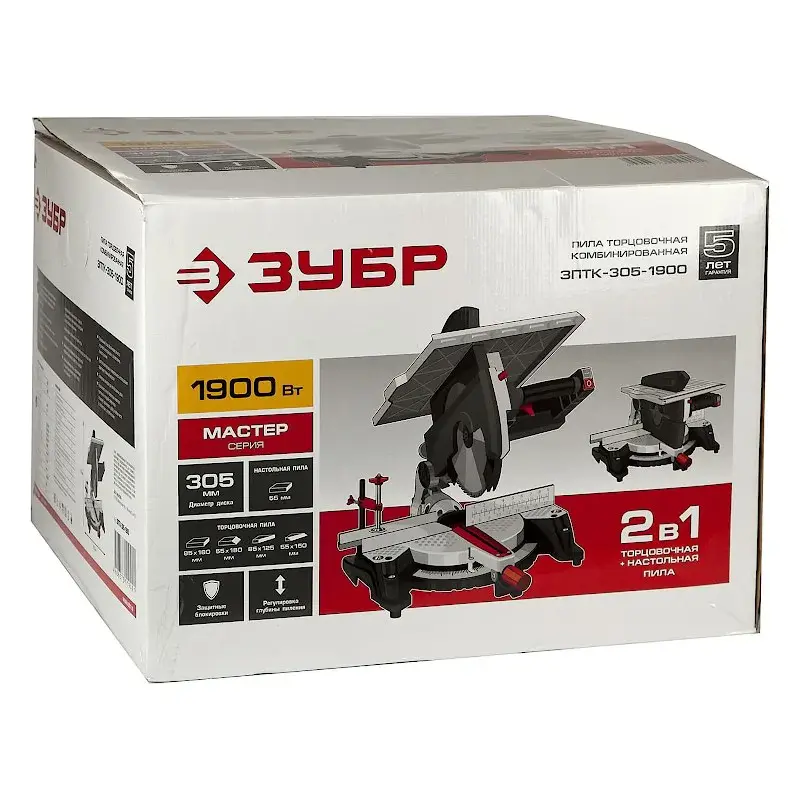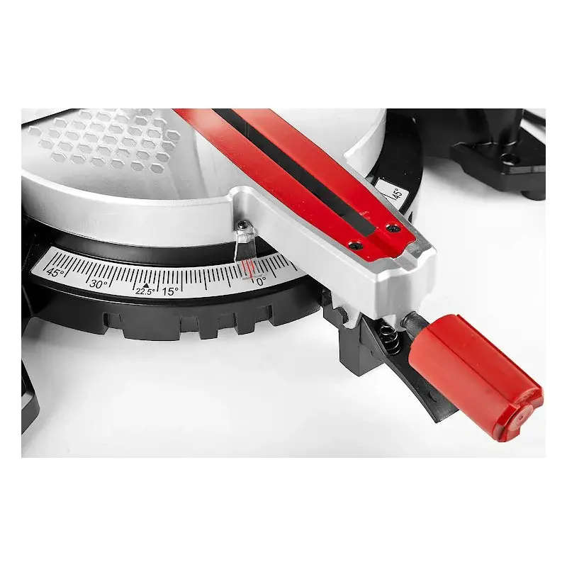В качестве привода используется мотор мощностью 1050 Вт, который раскручивает рабочее полотно до 4500 об/мин. Максимальная глубина пропила под углом 90° составляет 40 мм, под углом 45° - 30 мм.