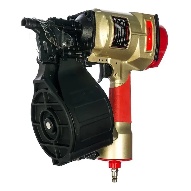 Пневмопистолет подключается к источнику сжатого воздуха через штуцер диаметром 1_4 дюйма и шланг диаметром 3/8 дюйма, расходует 1,7 л воздуха на один удар. Вы можете загрузить в магазин сразу 250-300 гвоздей с сечением ножки 2,3-2,9 мм. Опора под гвозди регулируется в вертикальной плоскости в четырех положениях по меткам обозначенным в дюймах и миллиметрах внутри магазина.