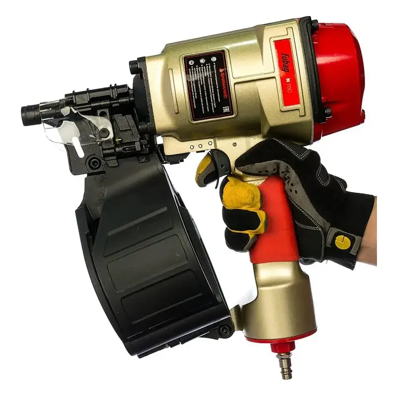 Большой объем барабана сокращает количество вынужденных перерывов для загрузки гвоздей, существенно ускоряет строительные, монтажные или ремонтные работы. Длина используемых гвоздей составляет от 45 до 70 мм, поэтому пистолет подходит для работы с толстыми балками или стенами. При подсоединенной подаче воздуха пистолет срабатывает при нажатии на спусковой крючок. Рабочее давление 5 — 7 бар позволяет использовать пистолет Fubag N70C с разными моделями компрессоров.