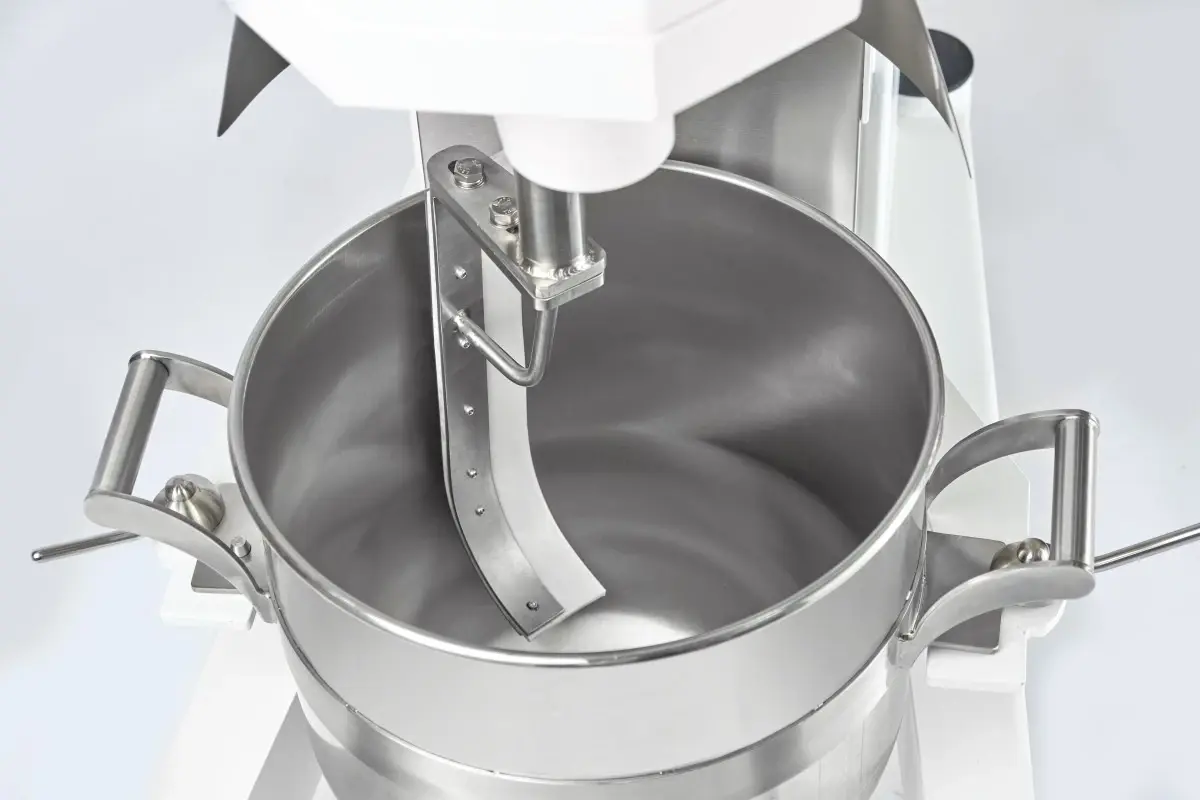 Объемная чаша на 40 л позволяет приготовить блюда на большое количество человек одновременно. Чаша и все насадки выполнены из аустенитной нержавеющей стали AISI 304, что обеспечивает долгую и надежную эксплуатацию на радость всем кулинарам.