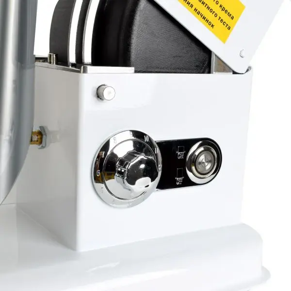 Подвижная откидывающая верхняя часть миксера позволяет легко и удобно устанавливать и снимать дежу и менять насадки