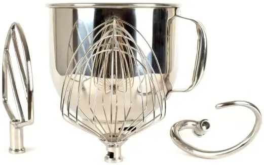 Комплект поставки: миксер, дежа, венчик, лопатка, крюк.