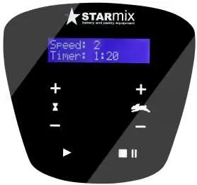 На передней панели размещена сенсорная панель управления, включающая в себя кнопку вкл./выкл, кнопку аварийной остановки, регулятор скорости и таймер на 30 минут.