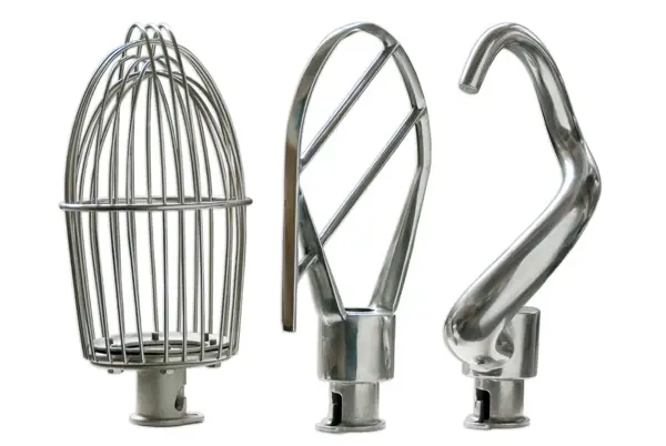 Миксер снабжен тремя легко устанавливаемыми инструментами: взбивалкой, лопаткой, крючком, которые позволяют взбивать, смешивать, замешивать любой продукт питания.