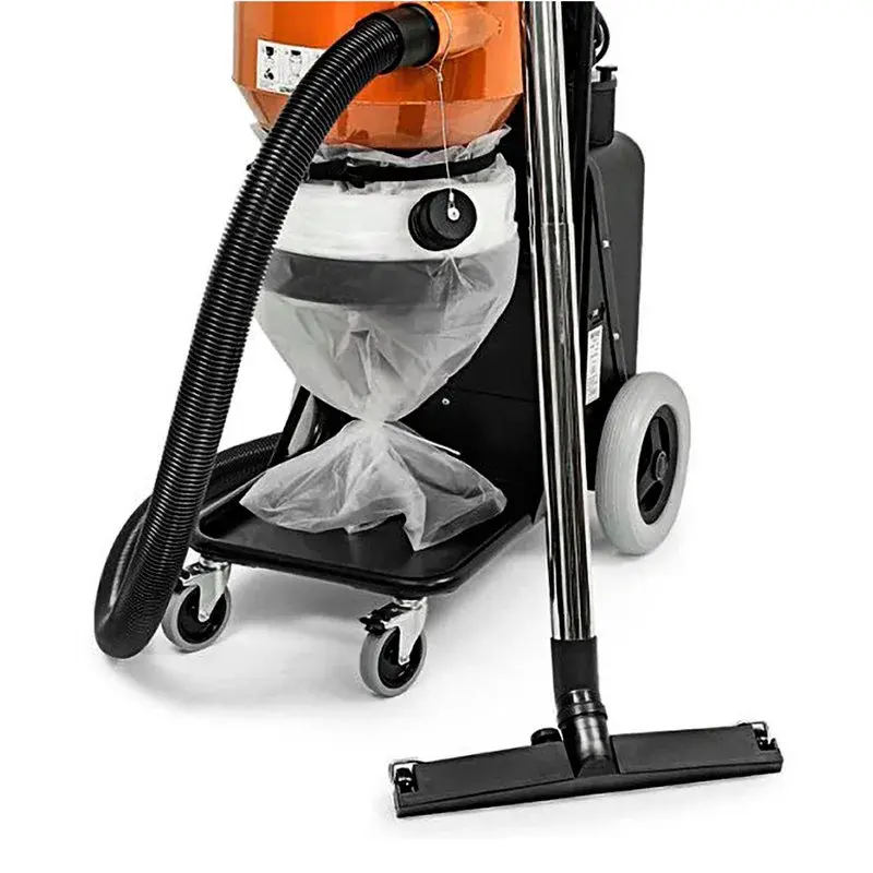 Строительный пылесос Husqvarna S26 - мощный строительный пылесос с одноконтурной системой удаления пыли для работ сухом и влажном режиме. Система сбора - мешки Longopac. Оснащен однофазным электродвигателем 220 В, мощностью 2,4 кВт, с отдельной системой охлаждения и поэтому может непрерывно работать в течение всего дня. Отлично подходит для сбора сухого мусора, стружки, строительных отходов, водяного шлама при алмазном бурении и шлифовании бетона. Оснащен надежным сертифицированным фильтром HEPA H13 и массивным конусообразным фильтром предварительной очистки. Система очистки конического главного фильтра Jet Pulse обеспечивает стабильный сбор пыли в течение всего рабочего дня.