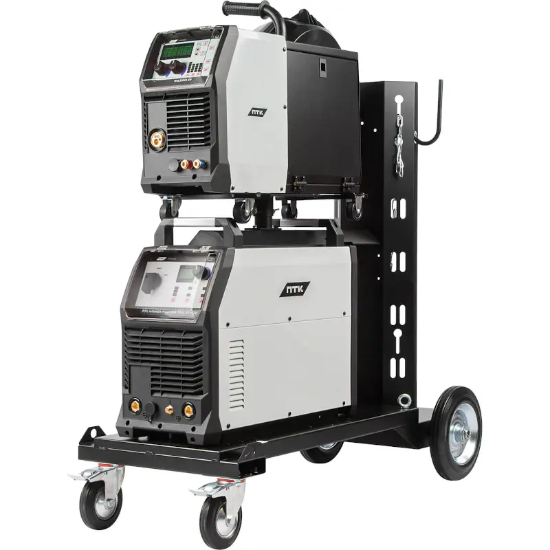 Аппарат поставляется в комплекте с тележкой для перемещения аппарата, подающего механизма и баллона с защитным газом. Тележка обладает надежной усиленной конструкцией, где толщина металла около 3 мм.