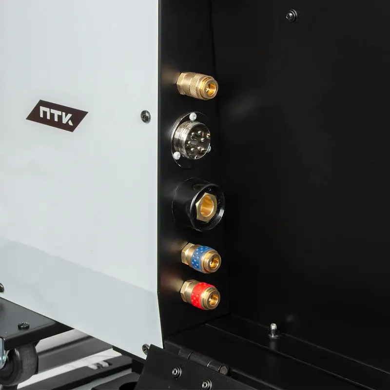 К аппарату ПТК HANKER MULTIMIG 350S EP H22 можно подключить блок жидкостного охлаждения ПТК HANKER с объемом бака 5,5 литров. Кнопка управления БЖО находится на передней панели источника.