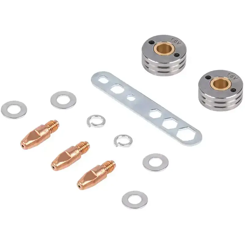 - 4-х роликовый металлический механизм подачи проволоки. Возможно установить катушку с проволокой весом до 15 кг. В подающем механизме установлены ролики 30х10х12 для стальной проволоки диаметром 0,8-1,0 мм.