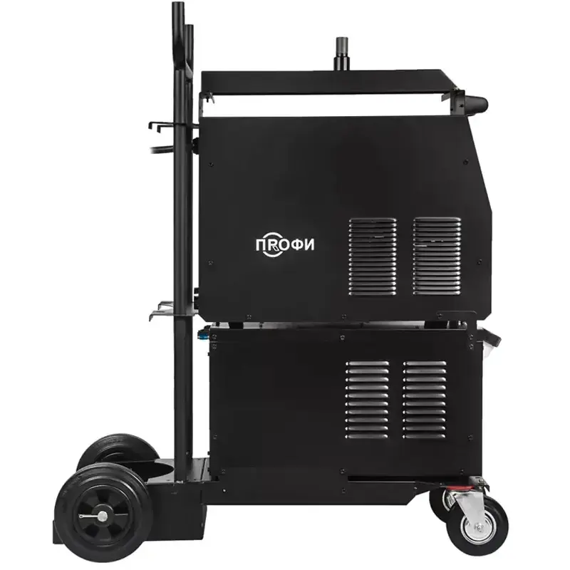Полуавтомат ПРОФИ MIG 500 SYN FW поставляется с блоком водяного охлаждения объемом до 10 литров и с тележкой-платформой, для легкого и комфортного перемещения и эксплуатацию оборудования. Тележка оснащена надежной усиленной конструкцией. На нее можно установить сварочный источник, выносной подающий механизм, блок жидкостного охлаждения и газовый баллон объемом 40 литров.