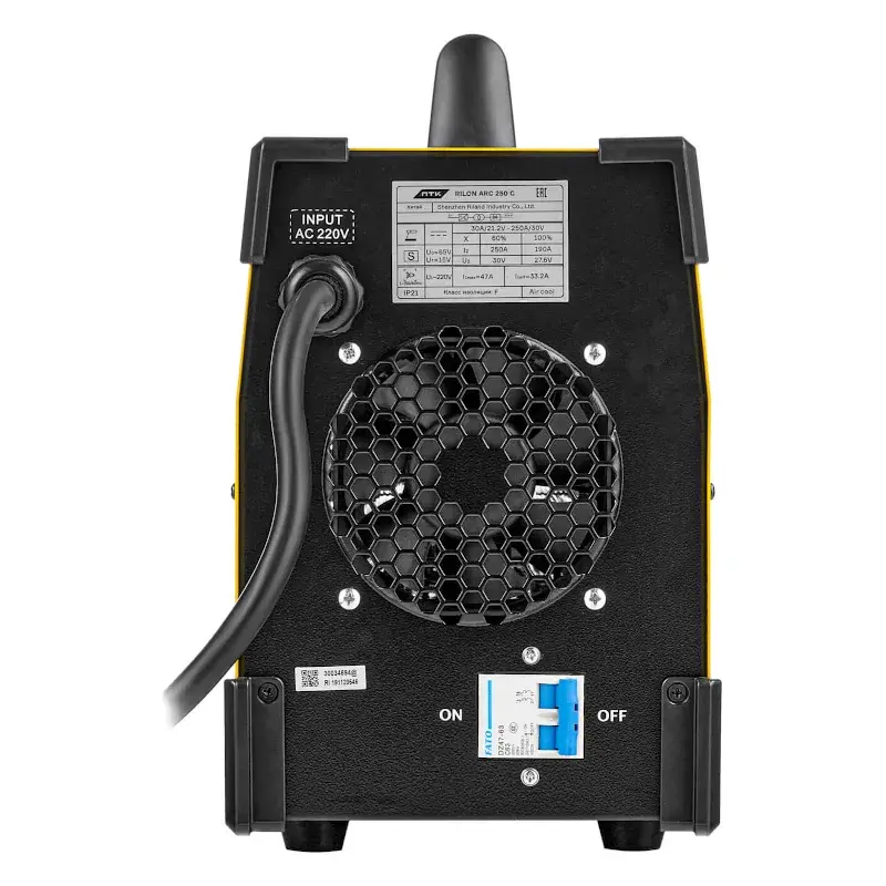 Функция VRD обеспечивает безопасность сварщика за счет снижения напряжения до минимального значения при замыкании сети. Оборудование оснащено датчиком температуры с индикатором перегрева. В случае превышения допустимого уровня нагрева срабатывает системы защиты, которая запускает вентилятор и отключает устройство во избежание его поломки. После остывания и стабилизации температуры сварочный инвертор ПТК RILON ARC 250 C НАКС автоматически возобновляет работу.
