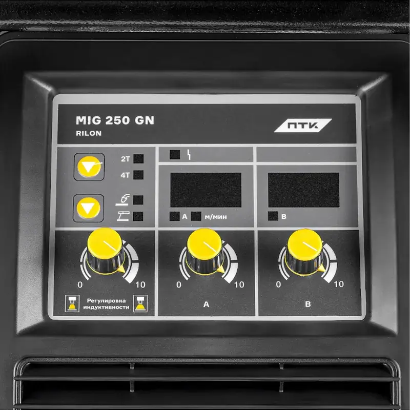 ПТК RILON MIG 250 GN – это обновленная линейка аппаратов для полуавтоматической сварки, которая производится на заводе RILAND. В аппаратах применяются усовершенствованные инверторные технологии. Принцип работы заключается в преобразовании переменного тока частотой 50Гц в постоянный ток и далее в ток высокой частоты (33 кГц), посредством мощных IGBT транзисторов, а затем выполняется преобразование высокого напряжения в высокий ток. Выходная мощность источника регулируется при помощи ШИМ (широтно-импульсной модуляции сигнала). Аппарат работает от трехфазной питающей сети в диапазоне ±15% без снижения характеристик.