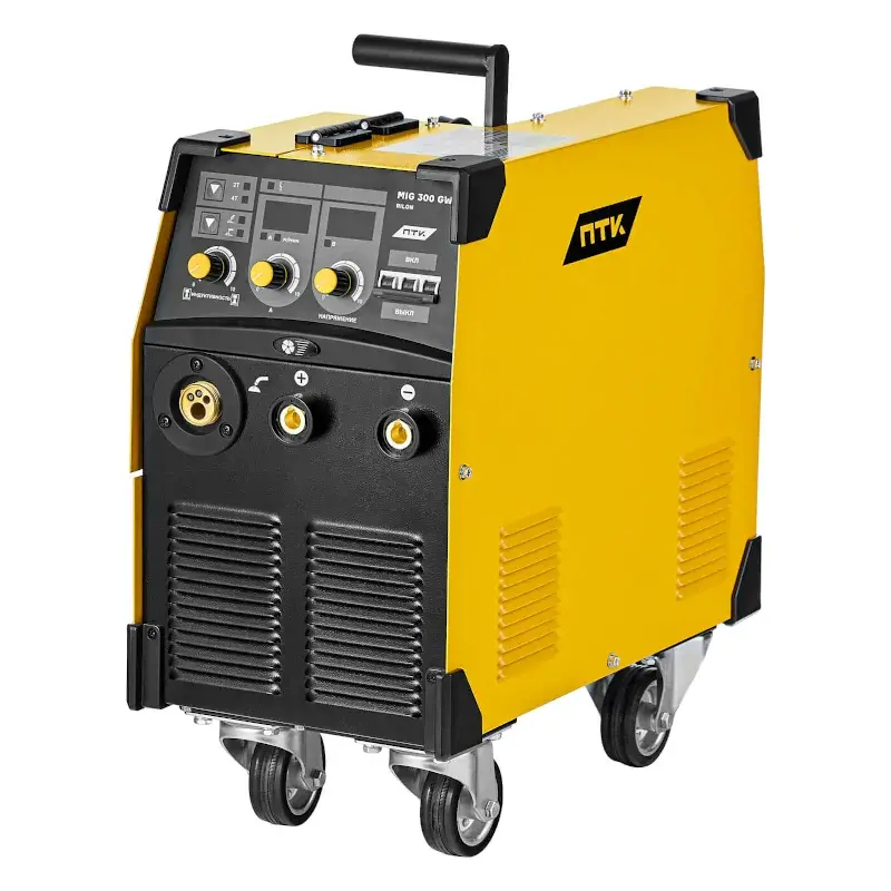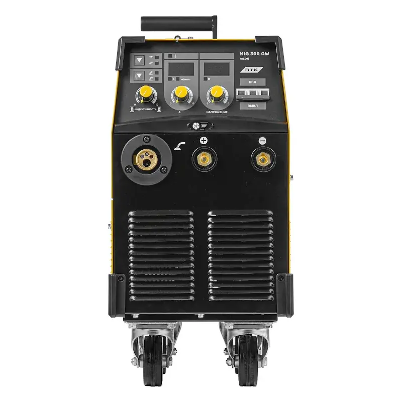 ПТК RILON MIG 300 GW – это обновленная линейка аппаратов для полуавтоматической сварки, которая производится на заводе RILAND. В аппаратах применяются усовершенствованные инверторные технологии. Принцип работы заключается в преобразовании переменного тока частотой 50Гц в постоянный ток и далее в ток высокой частоты (100 кГц), посредством мощных IGBT транзисторов, а затем выполняется преобразование высокого напряжения в высокий ток. Выходная мощность источника регулируется при помощи ШИМ (PWM). Аппарат работает от трехфазной питающей сети в диапазоне ±15% без снижения характеристик.