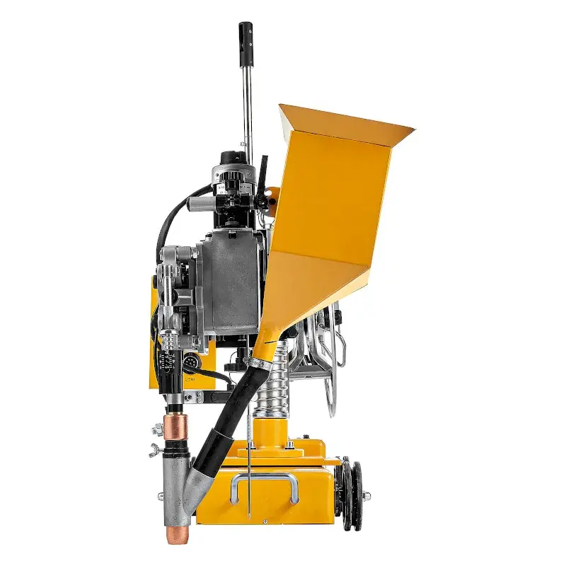 Сварочный трактор MZ 1250 HD состоит из инверторного источника питания и передвижной каретки, на которой установлен механизм подачи проволоки, бункер с флюсом и блок управления. Автомат в процессе работы передвигается по изделию или по уложенной на нем направляющей линейке.