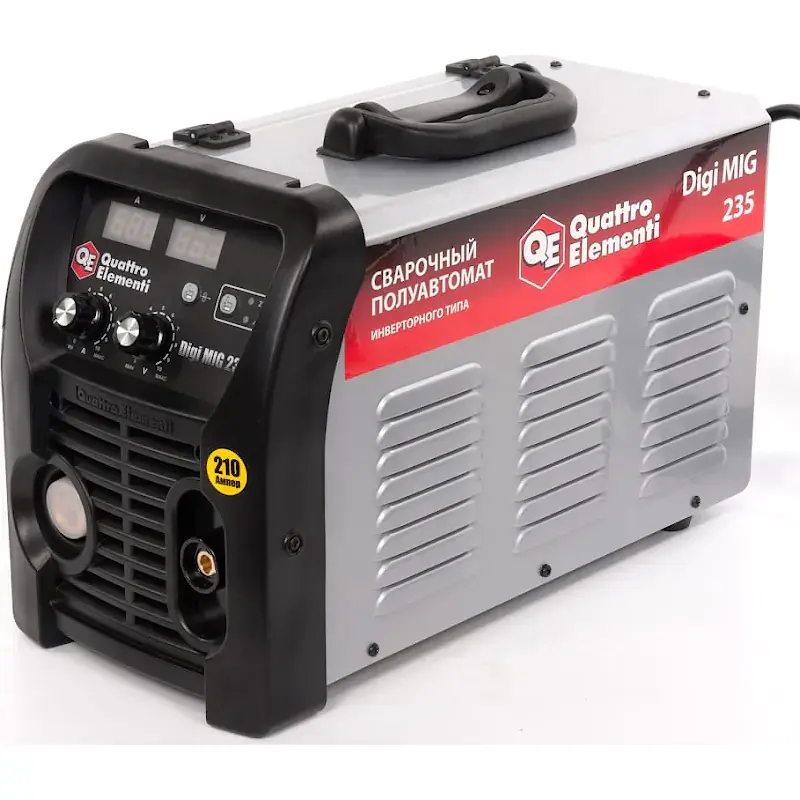 Инверторный аппарат полуавтоматической сварки QUATTRO ELEMENTI Digi MIG 235 используют небольшие производственные компании и частные мастерские. Сварка производится проволкой в среде защитного газа и без него. Инвертор характеризуется небольшими размерами и малым весом, что делает его высокомобильным аппаратом. Использование биполярных транзисторов и инновационной схемотехники обеспечило модели длительный срок работы, надежность деталей и высокую мощность - 5.7 кВт. Включается в однофазную бытовую сеть напряжением 220 В частотой 50 Гц.