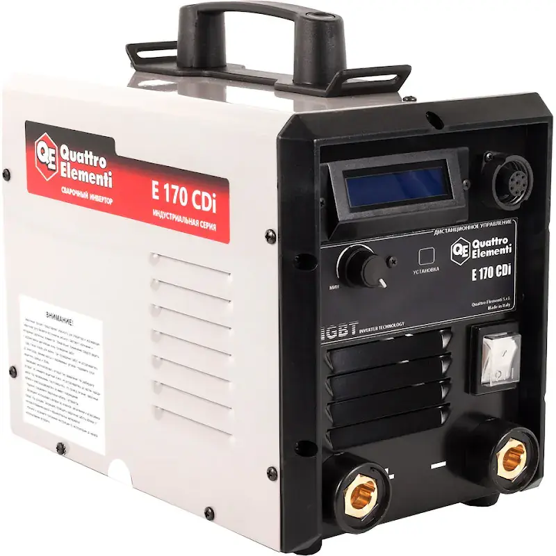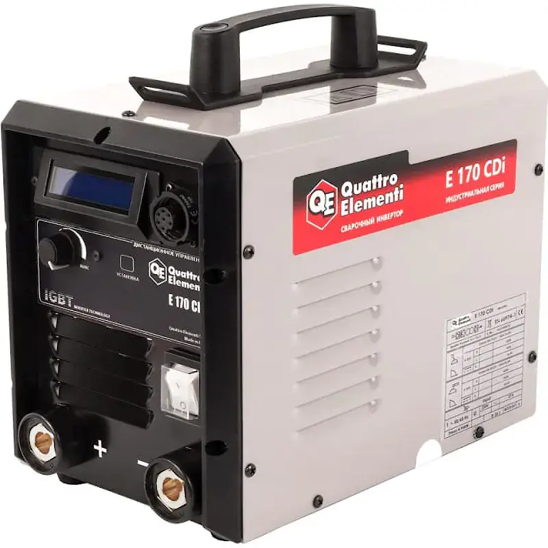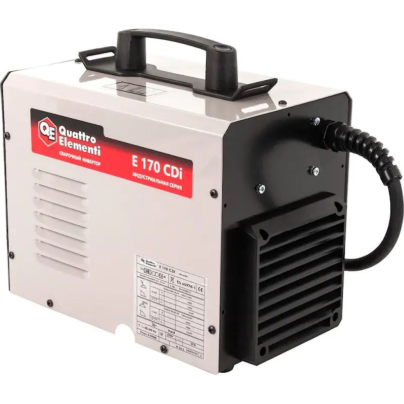 Инверторный аппарат электродной сварки QUATTRO ELEMENTI E 170 - это профессиональное оборудование, предназначенное для дуговой сварки штучными электродами (MMA) и аргонодуговой сварки (TIG lift). Используется на производстве, в строительстве и в других сферах, где предъявляют высокие требования к качеству сварного шва. Небольшие габариты, малый вес и широкая рукоятка на корпусе инвертора позволяют с легкостью переносить его с одного рабочего места на другое. В конструкции аппарата предусмотрен пульсер частотой 3/175 Гц. Максимальная мощность устройства - 4.95 кВт.