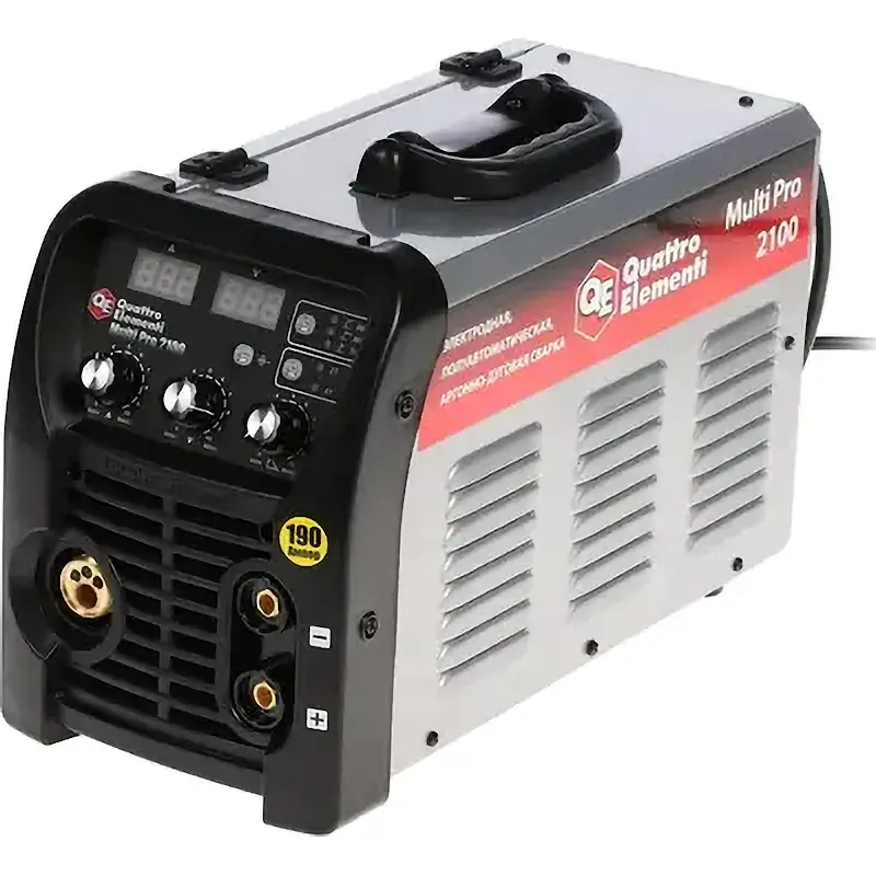 Сварочный аппарат QUATTRO ELEMENTI Multi Pro 2100 питается от бытовой сети с напряжением 220 В и частотой 50 Гц. При этом модель будет стабильно работать при скачках напряжения в пределах ± 15 %.