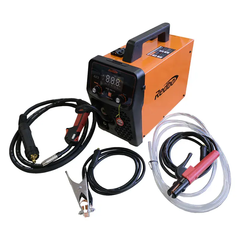 На большом светодиодном дисплее отображается напряжение питающей сети, значение сварочного тока, индикация питания, режима сварки и состояния перегрева. Поворотные регуляторы позволяют регулировать скорость подачи проволоки, значение тока сварки и выходного напряжения. Инверторный сварочный полуавтомат MIG/MAG Redbo поддерживает три режима сварки с использованием газовой смеси и два метода без использования газа.