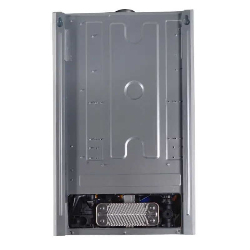 Конструкция котла включает в себя первичный теплообменник изготовлен из меди, а вторичный — из нержавеющей стали, что гарантирует длительный срок службы и устойчивость к коррозии. Безопасность эксплуатации обеспечивается закрытой камерой сгорания с принудительным отводом продуктов сгорания через коаксиальный дымоход диаметром 60/100 мм. Стандартные подключения предусматривают диаметр _ дюйма для отопления и холодного водоснабжения, а для горячего водоснабжения используется подключение _ дюйма.